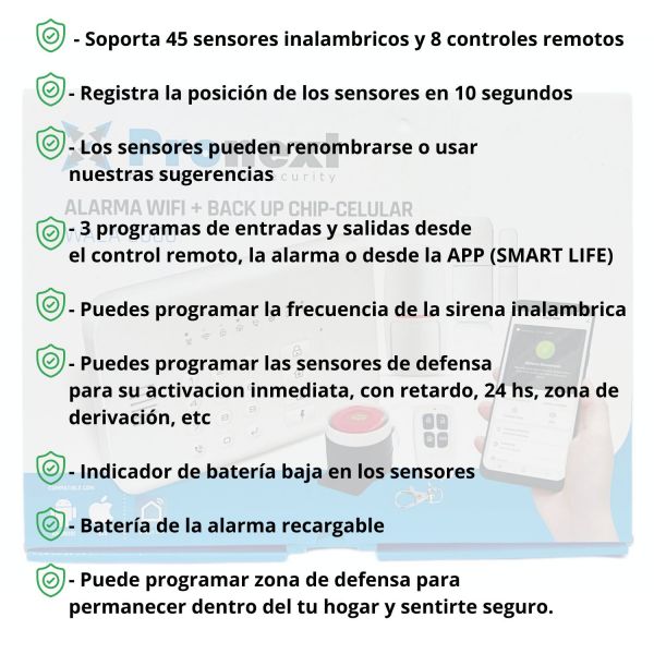 ● 3 formas de Activación/Desactivación, desde el control remoto, el panel de alarma o desde la APP .