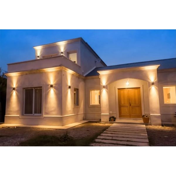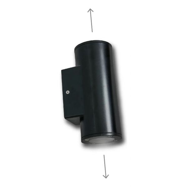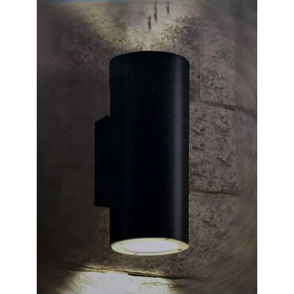 Aplique de pared dicroico redondo bidireccional Candela, diseñado para iluminación exterior decorativa y funcional. Proyecta la luz hacia arriba y hacia abajo, generando un efecto moderno y elegante ideal para fachadas, muros, galerías, pasillos y accesos. Su diseño redondo con terminación en color negro se adapta a distintos estilos arquitectónicos. Fabricado en ABS y PC, es resistente a la intemperie y cuenta con protección IP65. Funciona con lámparas dicroicas GU10 y se alimenta por corriente eléctrica directa.