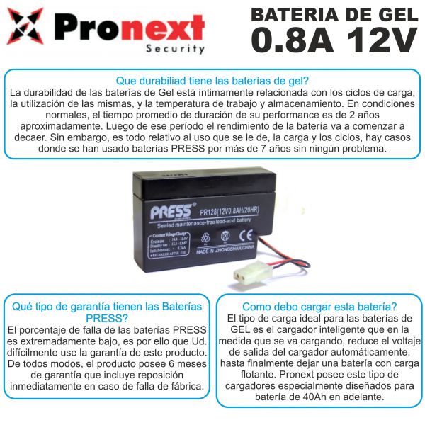 BATERIA DE GEL DE 12V 0.8 AH PRESS