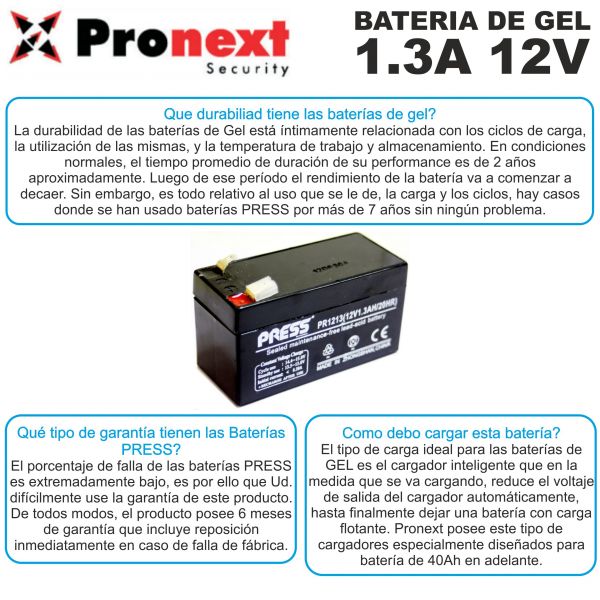 BATERIA DE GEL DE 12V 1.3 AH PRESS