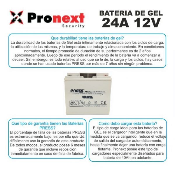 BATERIA DE GEL DE 12V 24 AH PRESS CICLO PROFUNDO