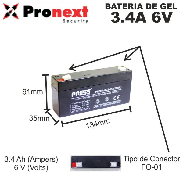 BATERIA DE GEL DE 6V 3.4 AH PRESS
