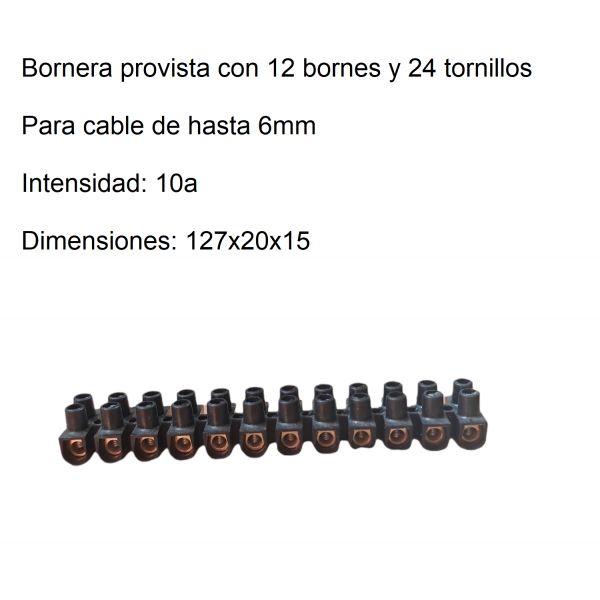 Borneras de union simples y enchufables con tornillos, provistas con 12 pares de bornes y 24 tornillos