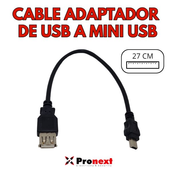 Adaptador de USB a MINI USB de 27 cm de largo.