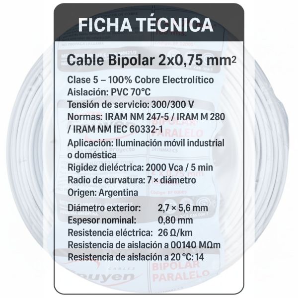 CABLE BIPOLAR 0.75 MM X 100 METROS EPUYEN