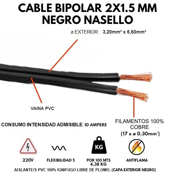CABLE BIPOLAR 2X1.5 MM NEGRO X 100 MTS CONDUELEC