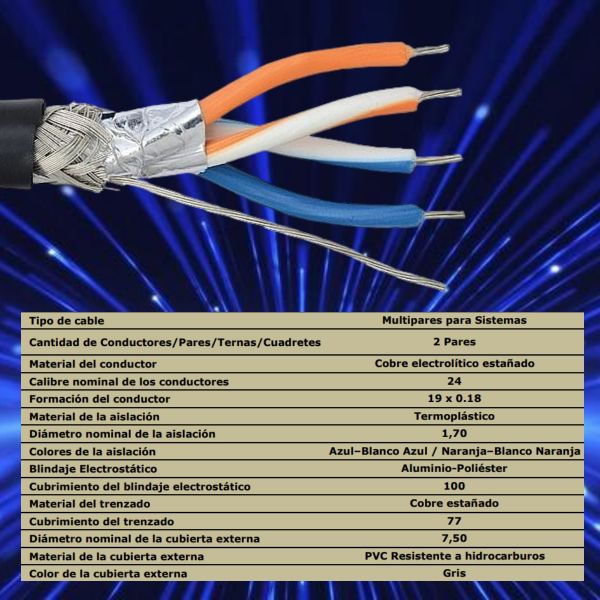 CABLE MULTIPAR DE INSTRUMENTACIÓN BLINDADO RS 485 2 PARES 24 AWG
