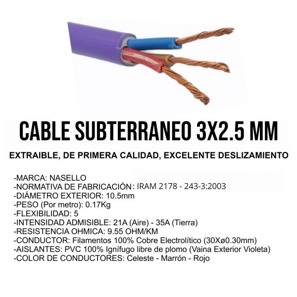 CABLE SUBTERRANEO 3X2.5 MM X METRO CONDUELEC