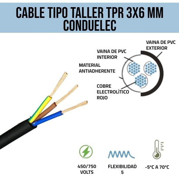 CABLE TIPO TALLER TPR 3X6 MM X 100 METROS CONDUELEC