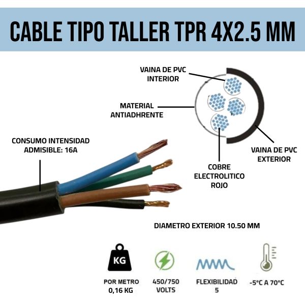 CABLE TIPO TALLER TPR 4X2.5 MM X METRO CONDUELEC
