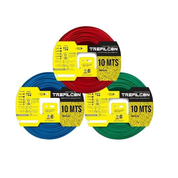 CABLE UNIPOLAR 2.5 MM TREFILCON X 10M PACK X 3 COLORES (ROJO- CELESTE - VERDE/AMARILLO)