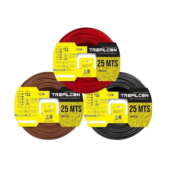 CABLE UNIPOLAR 2.5 MM TREFILCON X 25M PACK X 3 COLORES (MARRON - ROJO- NEGRO)