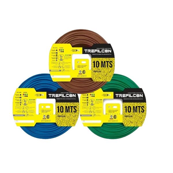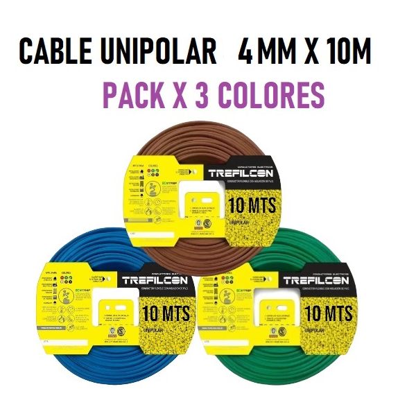 CABLE UNIPOLAR 4 MM TREFILCON X 10M PACK X 3 COLORES (MARRON - CELESTE - VERDE/AMARILLO)