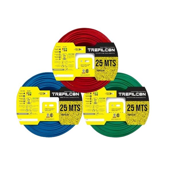 CABLE UNIPOLAR 4 MM TREFILCON X 25M PACK X 3 COLORES (ROJO- CELESTE - VERDE/AMARILLO)