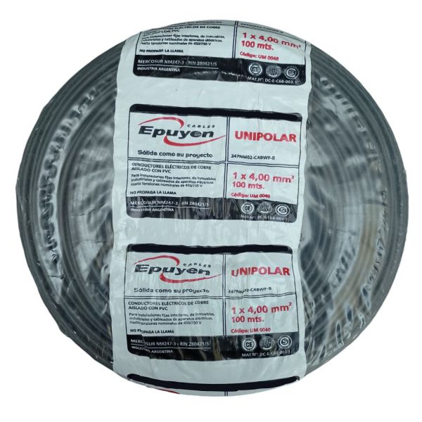 CABLE UNIPOLAR 4 MM X 100 METROS EPUYEN