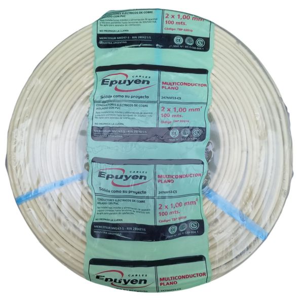 CABLE VAINA PLANA 2X1 MM X 100 METROS MARFIL EPUYEN