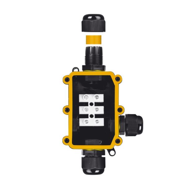 Caja Estanca IP65 3 Pines con Protección UV x1 Entrada x2 Salidas AC 450V 24A. DIAM 4-8mm