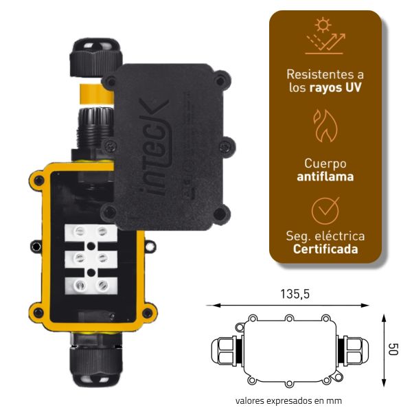 Caja estanca IP65 con protección UV y cuerpo antiflama. Fácil instalación con borneras a presión y prensa cable de primera calidad