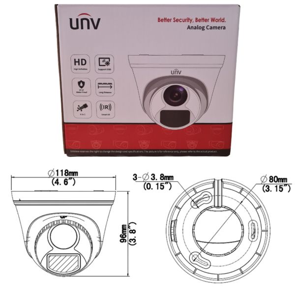 CAMARA DOMO ANALOGICA DOLPHIN 2 MPX LENTE FIJO 2.8MM UNIVIEW