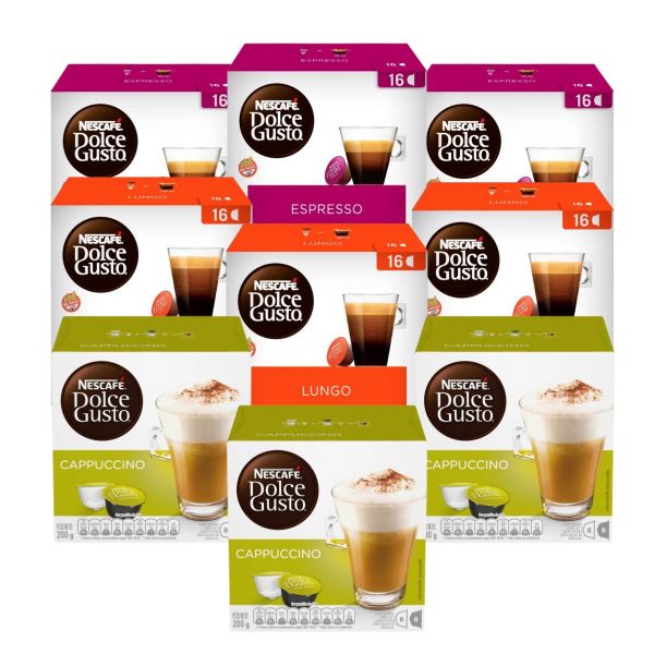 CAPSULAS DE CAFE DOLCE GUSTO CAPUCCINO + LUNGO + ESPRESSO