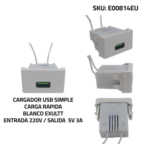 CARGADOR USB EXULTT URBANA 5V 3A (CARGA RAPIDA) SIMPLE BLANCO