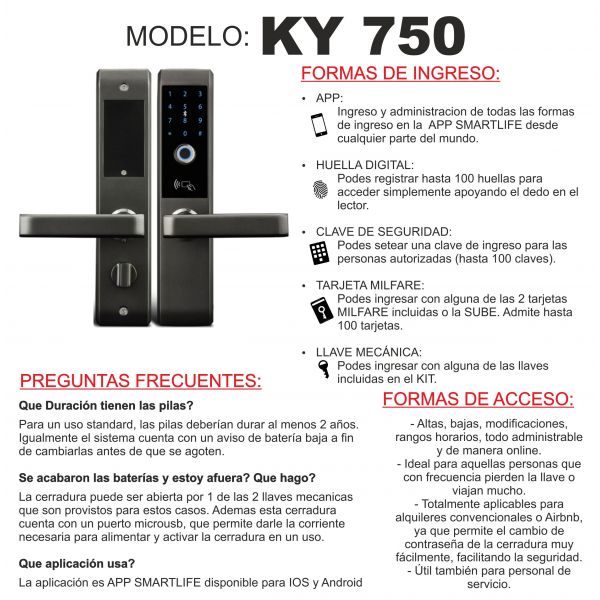 - Ingreso por Huella Digital: ingreso mediante simplemente tu dedo y de todaslas personas que registres con su huella. Hasta 100 huellas