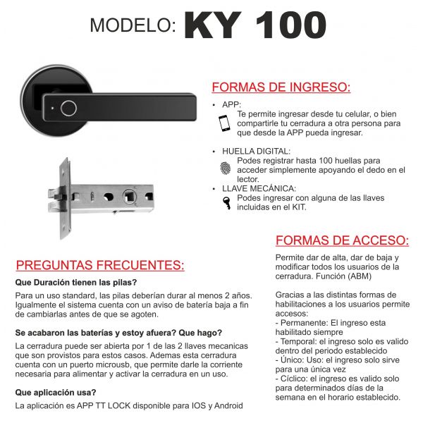 CERRADURA SMART PICAPORTE KY 100 + HUELLA + APP PRONEXT