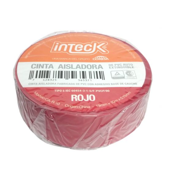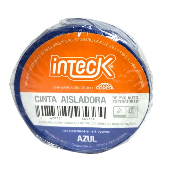 Cinta Aisladora de PVC Inteck 10 mts Aplicaciones: Aislaciones internas y externas de hasta 600V. · Protección externa en instalaciones de madia y alta tensión. · Identificación de cables (colores) - Armado de mazos de cables. · Enmascarar superficies y protegerlas da la abrasión, rayos UV, corrosión, humedad, etc. Colores: Blanco, Negro, Rojo, Amarillo, Verde, Azul y Tierra.