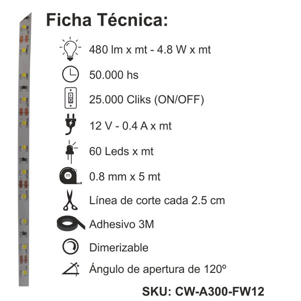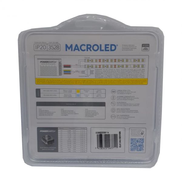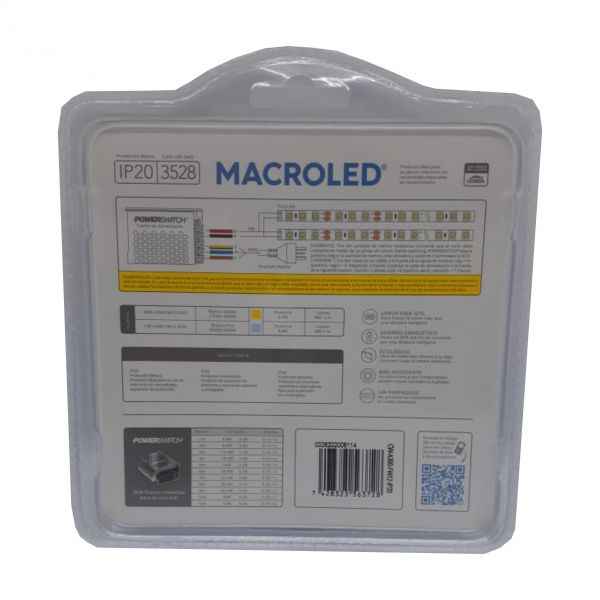 CINTA LED 24W 12V 3528 IP 20 X 5 MTS MACROLED