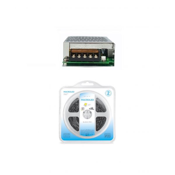 CINTA LED 2835 60W FRIO 12V + FUENTE DE 12V P / INTERIOR MACROLED