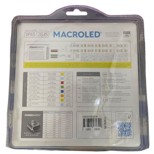CINTA LED 40W 12V 2835 IP 45 X 5 MTS MACROLED