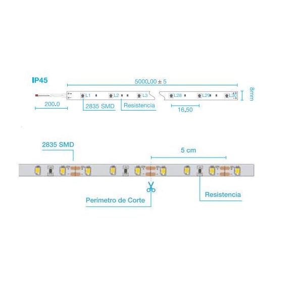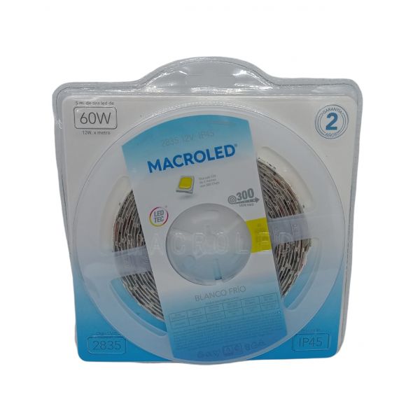 CINTA LED 60W 12V 2835 IP 45 X 5 MTS MACROLED