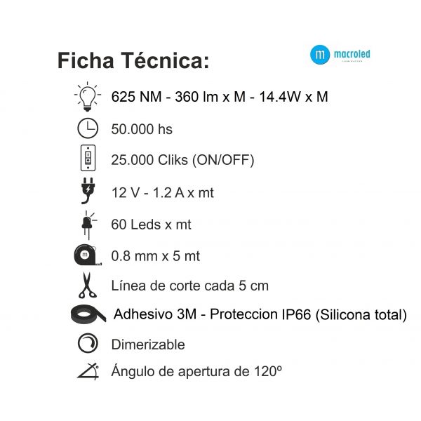• potencia14.4 W x Metro ( 72W en 5 metros)
