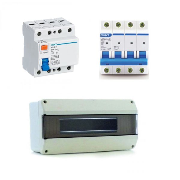 COMBO DISYUNTOR TETRAPOLAR 4X25 + TéRMICA TRIFASICO INDUSTRIAL 4X32 + TABLERO