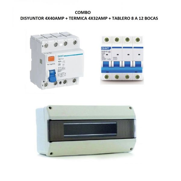 COMBO DISYUNTOR TETRAPOLAR 4X40 + TéRMICA TRIFASICO INDUSTRIAL 4X32 + TABLERO