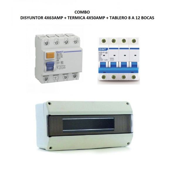 COMBO DISYUNTOR TETRAPOLAR 4X63 + TéRMICA TRIFASICO INDUSTRIAL 4X50 + TABLERO