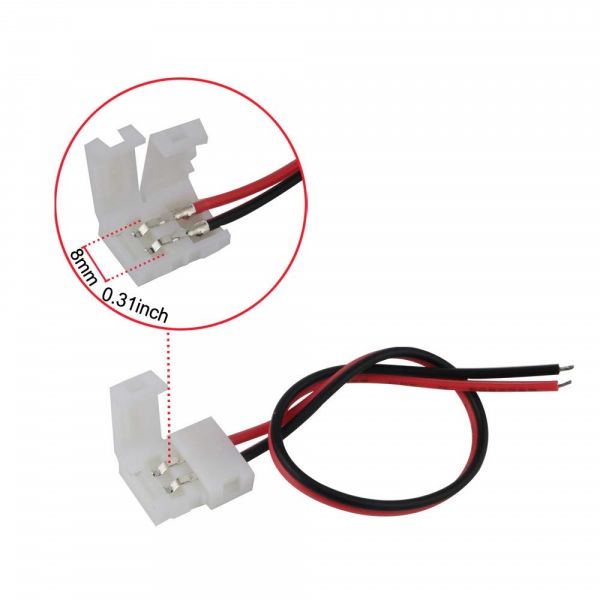 Para Tira Led de 28mm x 35 mm. El rojo es el positivo y el negro negativo. Este conector sirve para poderlo unir a una fuente de alimentacion de 12V; luego la fuente irá a 220V. Disfrutalo