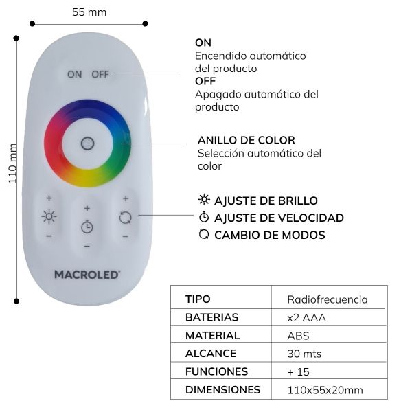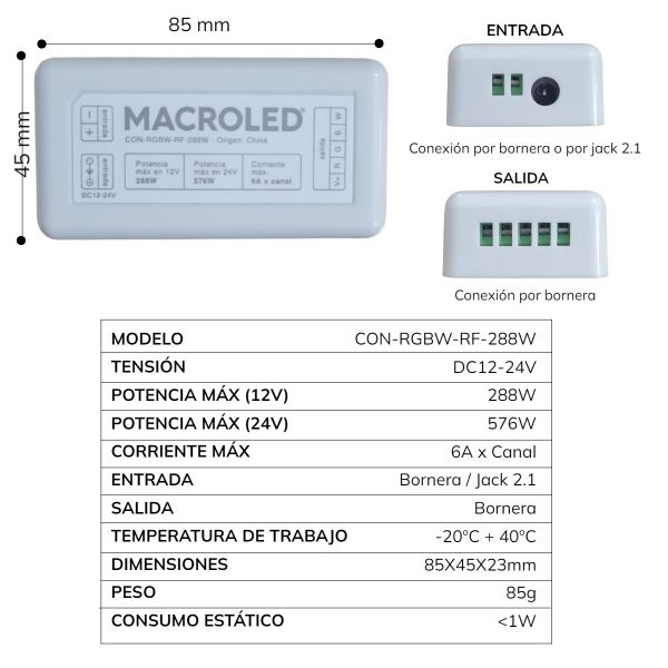 CONTROLADOR RGB RADIOFRECUENCIA + CONTROL TACTIL 288W MACROLED