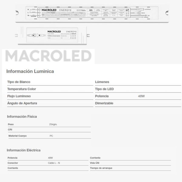 DRIVER DE EMERGENCIA PARA PANELES DE 40 Y 48W MACROLED