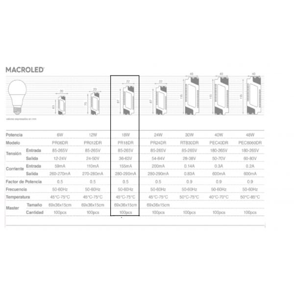 DRIVER PARA PANEL 18W MACROLED