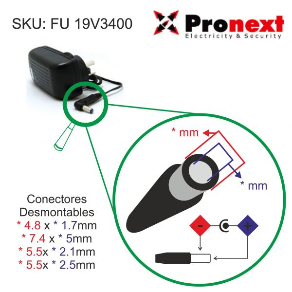 FUENTE SWITCHING 19VCC 3400MA DESMONTABLE PRONEXT