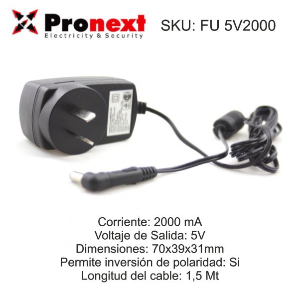 • caracteristicasvoltaje de salida: 5V | corriente (ma): 2 A | longitud de cable: 1.5mts | marca: PRONEXT