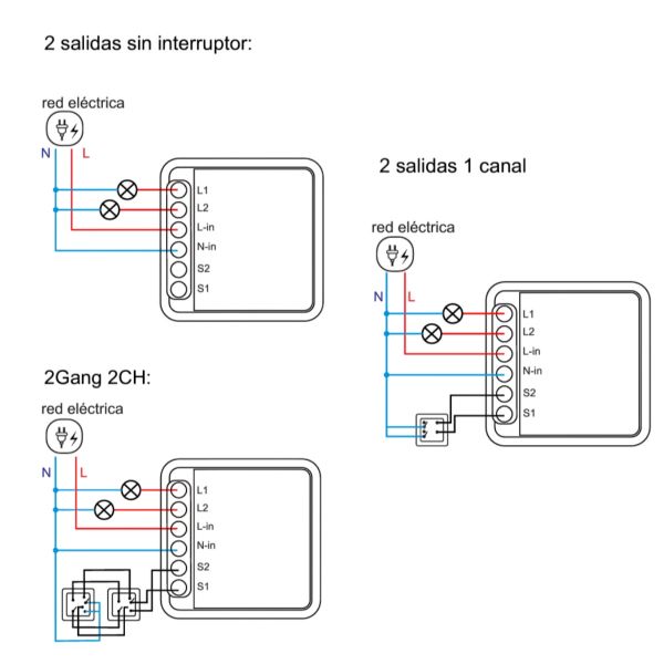 Funciones: Permite encender o apagar dos dispositivos eléctricos de forma independiente.