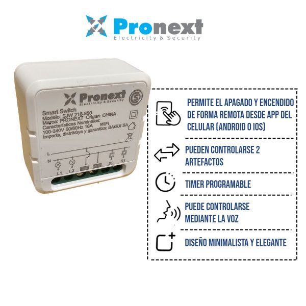 El Interruptor 2 Salidas Smart WiFi 16A TOTAL de Pronext es una excelente opción para controlar tus dispositivos eléctricos de manera inteligente.