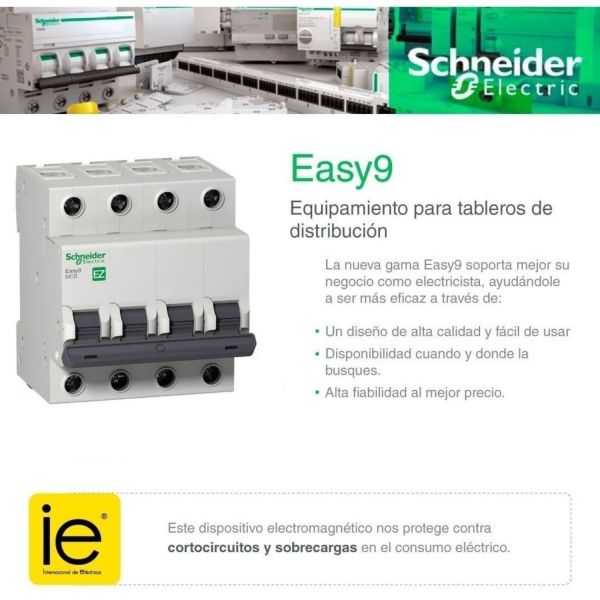 INTERRUPTOR TERMOMAGNETICO 4X40 SCHNEIDER - 4.5KA CURVA C E9