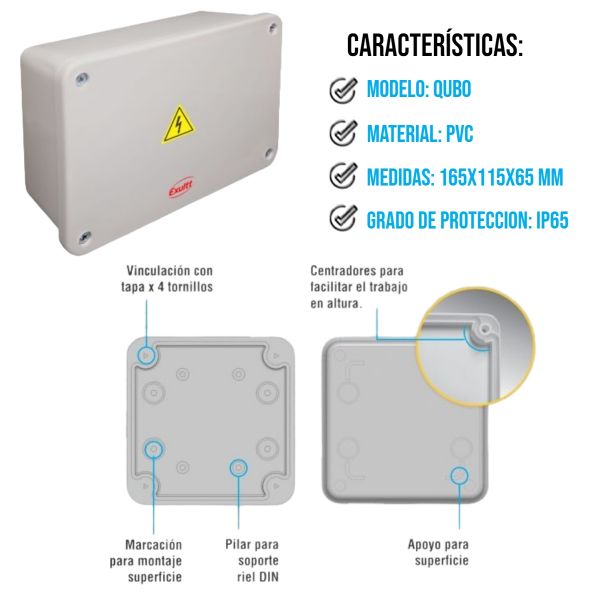 CAJA DE PASO ESTANCA IP65 EXTERIOR 165 X 115 X 65 MM BLANCO