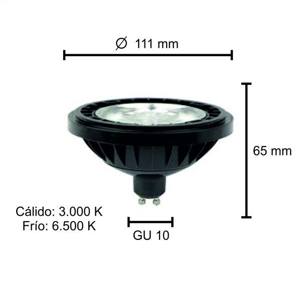 LAMPARA AR111 LED 11W 25º GU10 DE PVC GRIS MACROLED