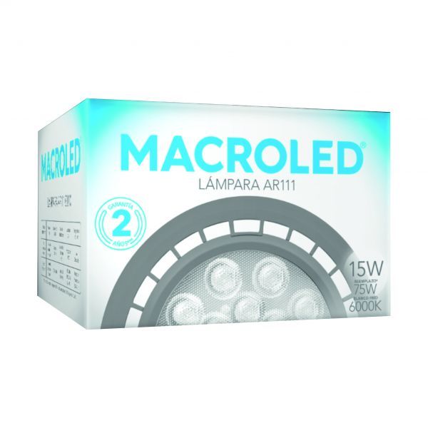 LAMPARA AR111 LED 15W 25º GU10 DIMERIZABLE DE PVC GRIS MACROLED