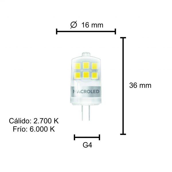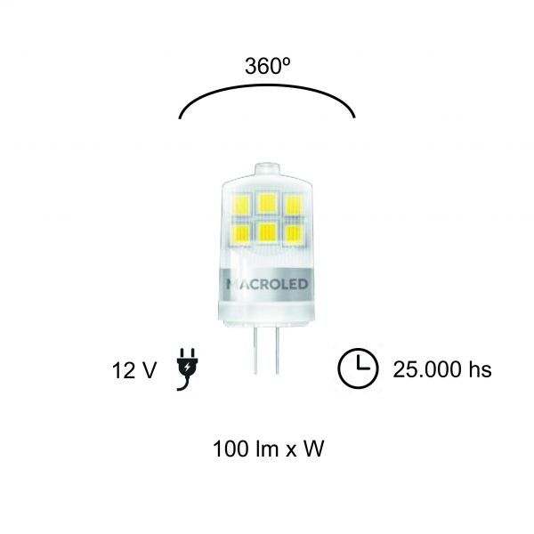 LAMPARA BIPIN 2W G4 12V MACROLED