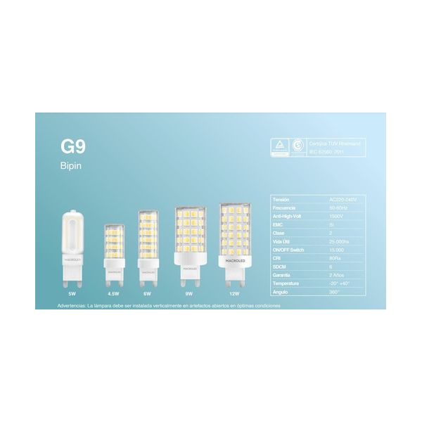 LAMPARA BIPIN OPAL 5W G9 220V MACROLED